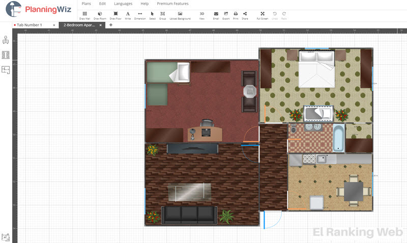 Con la aplicación PlanningWiz puedes conseguir diseñar planos bien equipados con una serie de muebles que si bien no son fotorrealistas como los de Amikasa o HomeStyler se logra una buen representación gráfica. La barra de herramientas principal se ubica en la barra superior y a la izquierda el equipamiento.