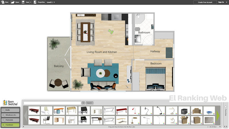 Sweet Home 3D es la aplicación gratis lista para descargar y usar desde el computador o vía el navegador web ( se necesita tener instalado Java, se te indicará con un anuncio cuando ingreses online a diseñar), como punto a favor es que puede generar completos planos en 2D y tener una vista simultánea en 3D; como punto en contra es que su biblioteca de archivos de equipamiento todavía sigue siendo corta, sin embargo debido al tiempo que lleva esta aplicación desde que fue lanzado es posible conseguir más equipamiento de lo usuarios o importarlas de otras aplicaciones como SketchUP.